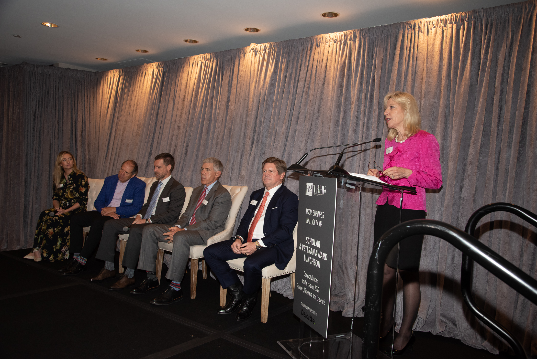On November 3, 2022, the Texas Business Hall of Fame hosted its annual Scholar & Veteran Award Luncheon at the Hilton Anatole in Dallas, Texas. The luncheon featured the presentation of awards to this year’s 44 recipients, as well as a Q&A discussion featuring the 2022 Hall of Fame Inductees. This luncheon was made possible through the generous support of Deloitte.